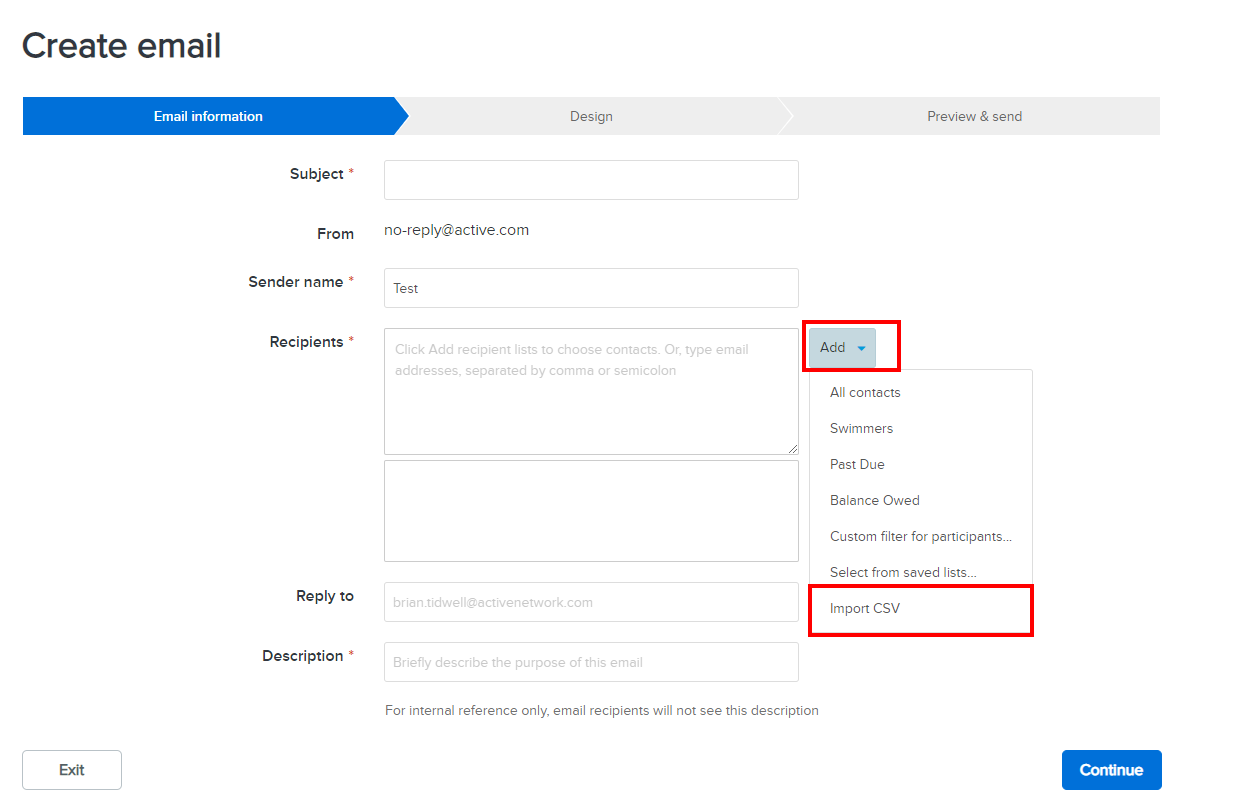 - Clicking Cancel on the Create email screen simply means the message in question has been cancelled - the imported list will still be accessible when creating an email in the future