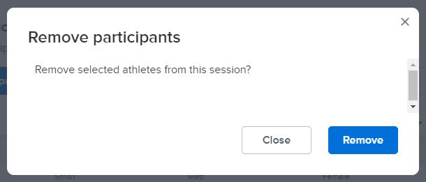 A. Select Remove to remove athlete from session. Click remove to confirm.