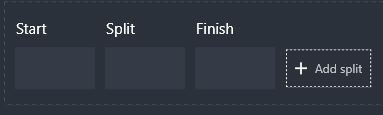 - NOTE: At this point, you need to estimate the maximum number of laps that can be completed by the most elite participant. Continue clicking Add Split until you reach this number. It is generally recommended that you add an additional 5 - 10 splits above this amount to provide a buffer.